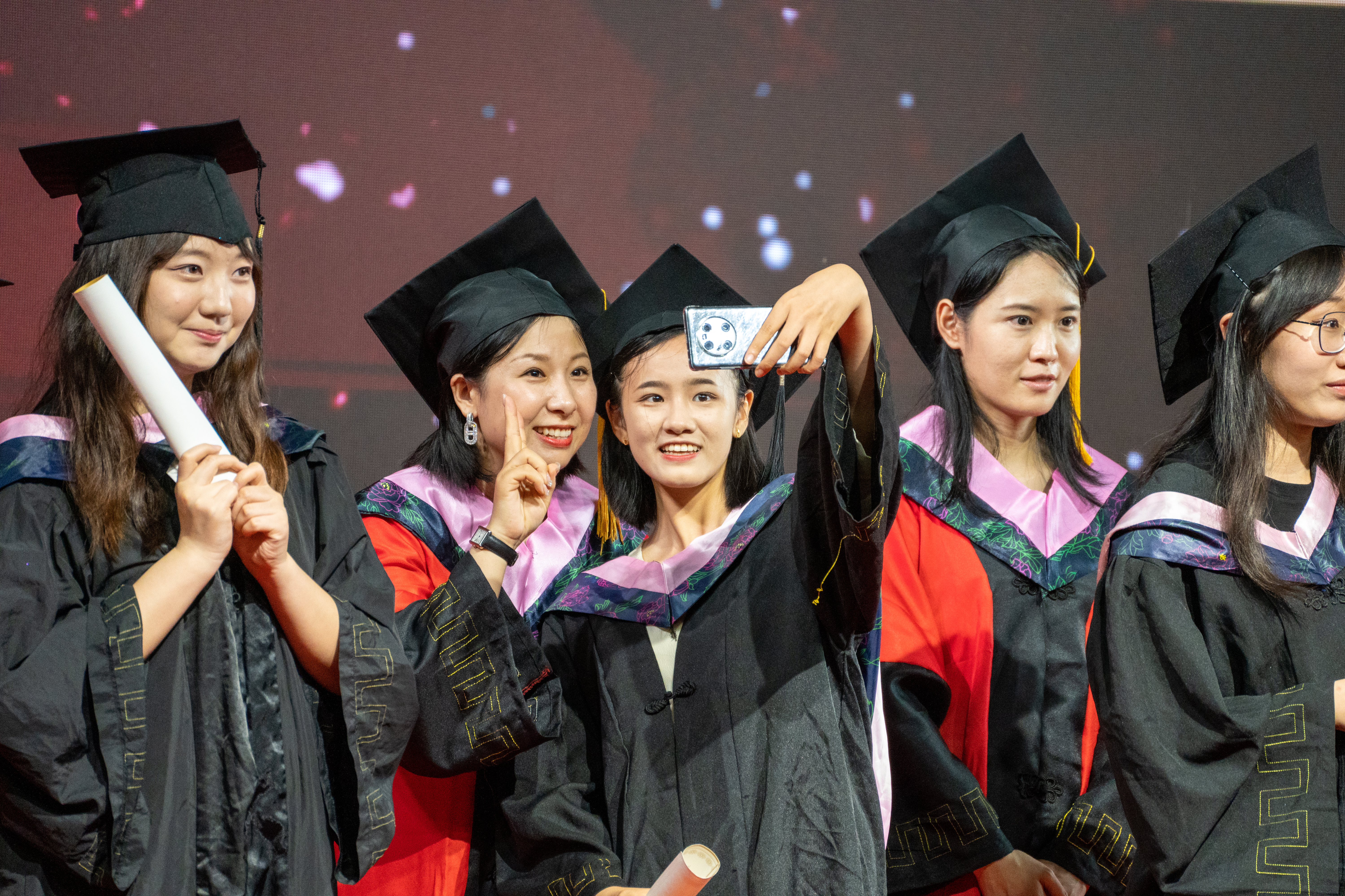 随后,校领导、学院教授组成的导师团为2648名毕业生颁发学位证书,并为毕业生们逐一拨穗、授予学位、合影留念。
