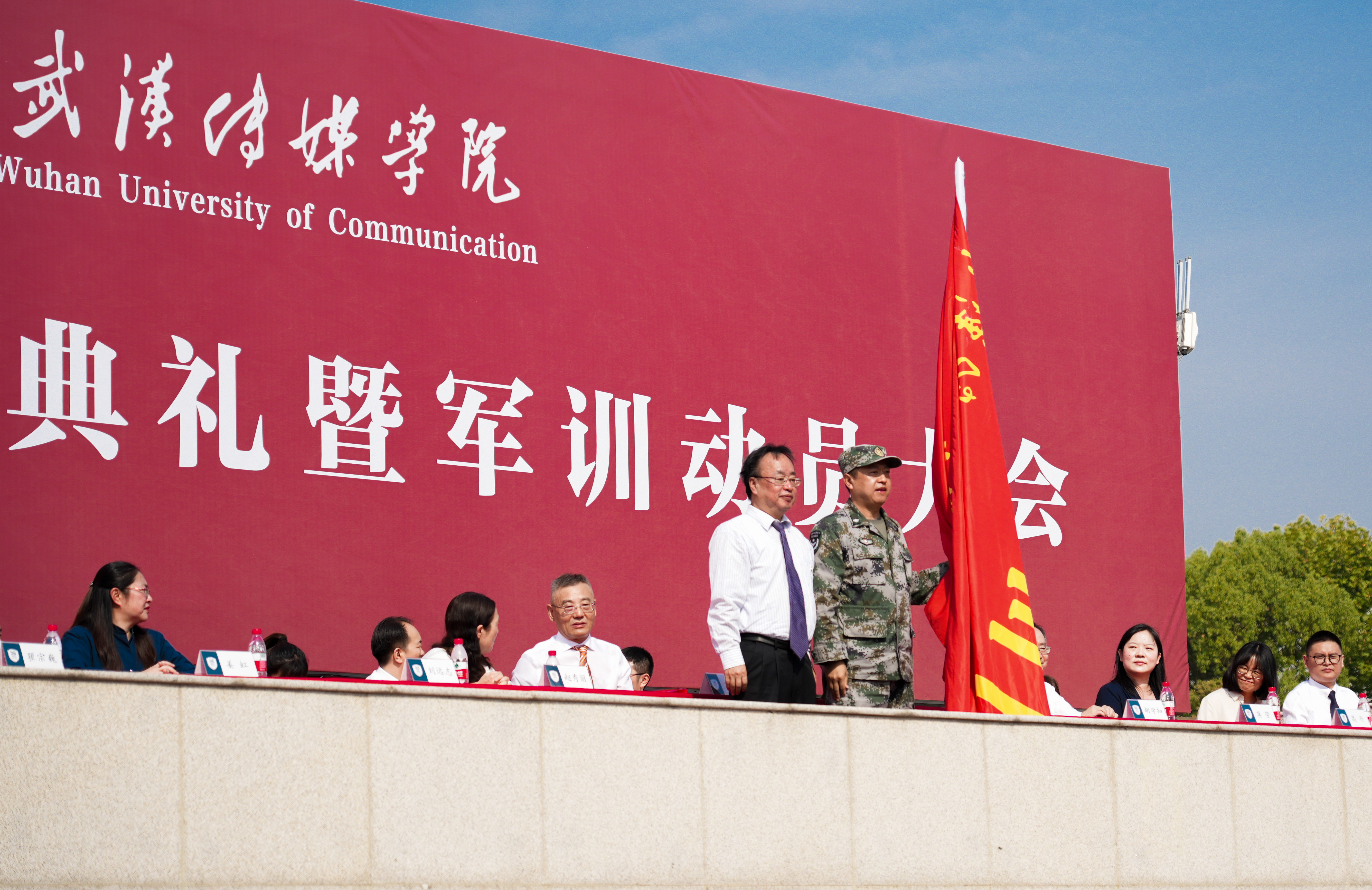 最后,由党委书记郭新力代表学校为军训团授团旗。我校特别聘请武昌职业学院教官帮助我校完成军训任务,各个队伍在教官的带领下有序地前往训练场地,为期10天的新生军训也正式拉开帷幕。