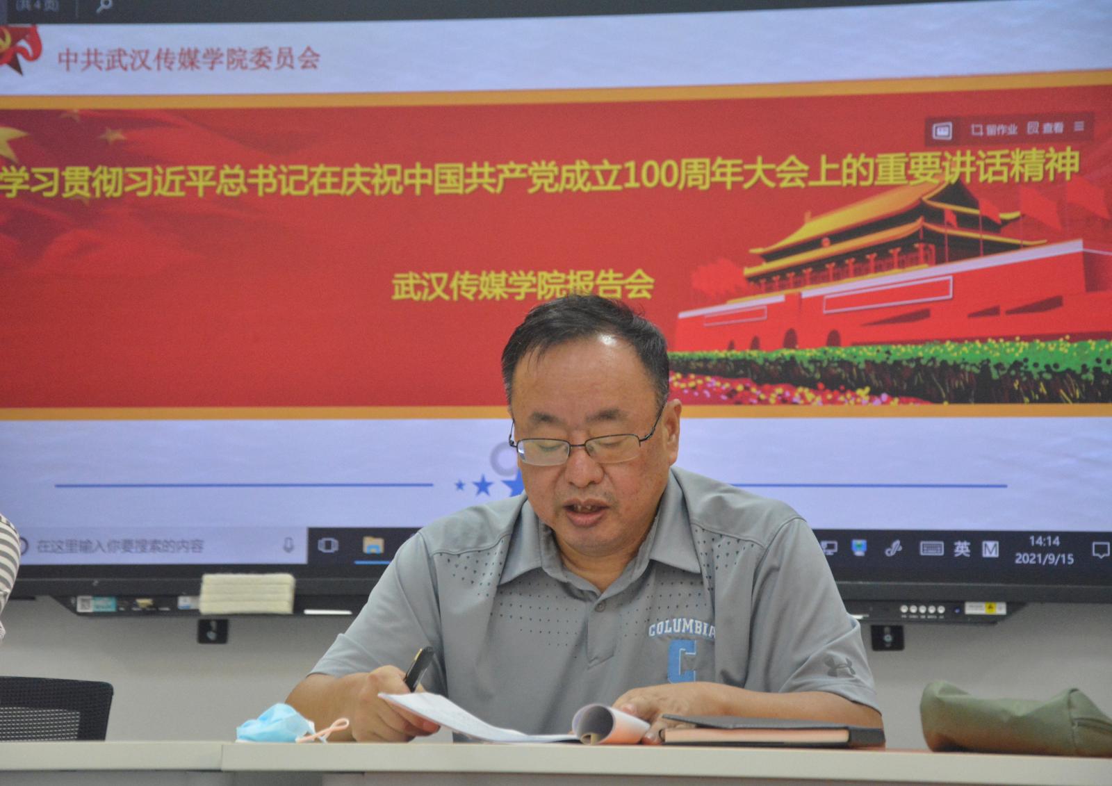 (武传新闻网讯)9月15日,我校举行党委理论学习中心组(扩大)学习会专题学习 “七一”重要讲话精神。校党委书记郭新力作学习“七一”重要讲话精神专题辅导报告。校党理论学习中心组全体成员,各党总支部书记,直属党支部书记,教师党支部书记及学生党支部书记参加此次学习。校党委副书记、常务副校长宗微主持会议。