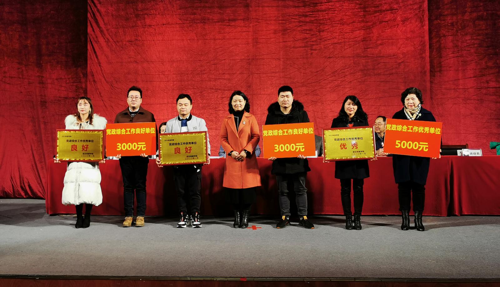 校长助理姚晓菊为党政综合考核优秀单位电影与电视学院,获得党政综合考核良好单位文化管理学院、新闻传播学院颁奖。