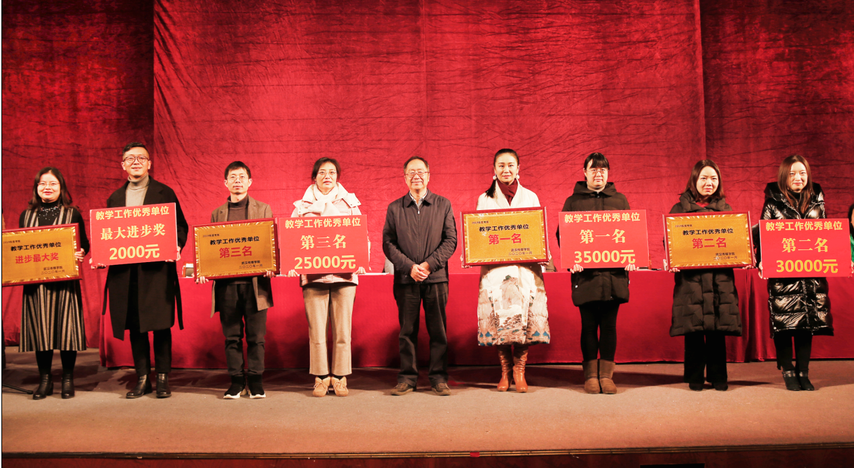 设计学院获得教学工作考核第一名,人文与艺术学院获得教学工作考核第二名、电影与电视学院获得第三名,人文与艺术学院同时获得教学工作进步最大奖,副校长胡学知为获奖单位颁奖。