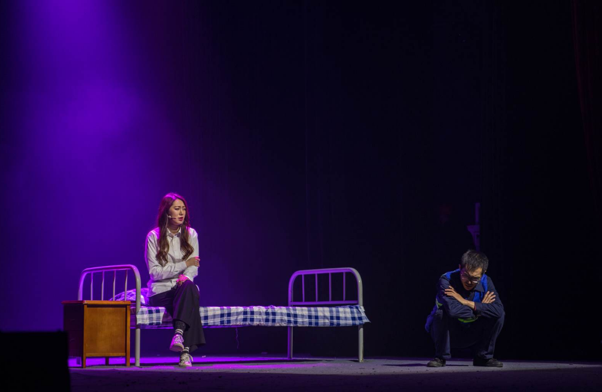 由张泽、乐建敏、张晓磊3位老师演绎的话剧《平行线》,讲述了铁道工人春生与妻子小梅恩爱有加,却与在铁轨救下的露露意外发生关系怀孕,不得不越过轨道与两个女人交流,最后春生忍受不住内心煎熬选择卧轨而死。得知丈夫外遇,饰演小梅的乐健敏老师痛苦嘶吼、捶打春生的情感爆发,赢得全场掌声。该剧导演、2016级表演专业学生陈丽芳介绍,为让演员情感充分爆发,她让演员通过锤打墙壁的痛觉感受,以体会打在春生身上却痛在心里的情感。在剧中有着重要作用的道具“轨道”,既寓意着连接两个世界的平行线,又预示着春生的越轨行为。据了解,这条“轨道”由戏剧影视美术设计专业师生耗费两周时间制作完成。