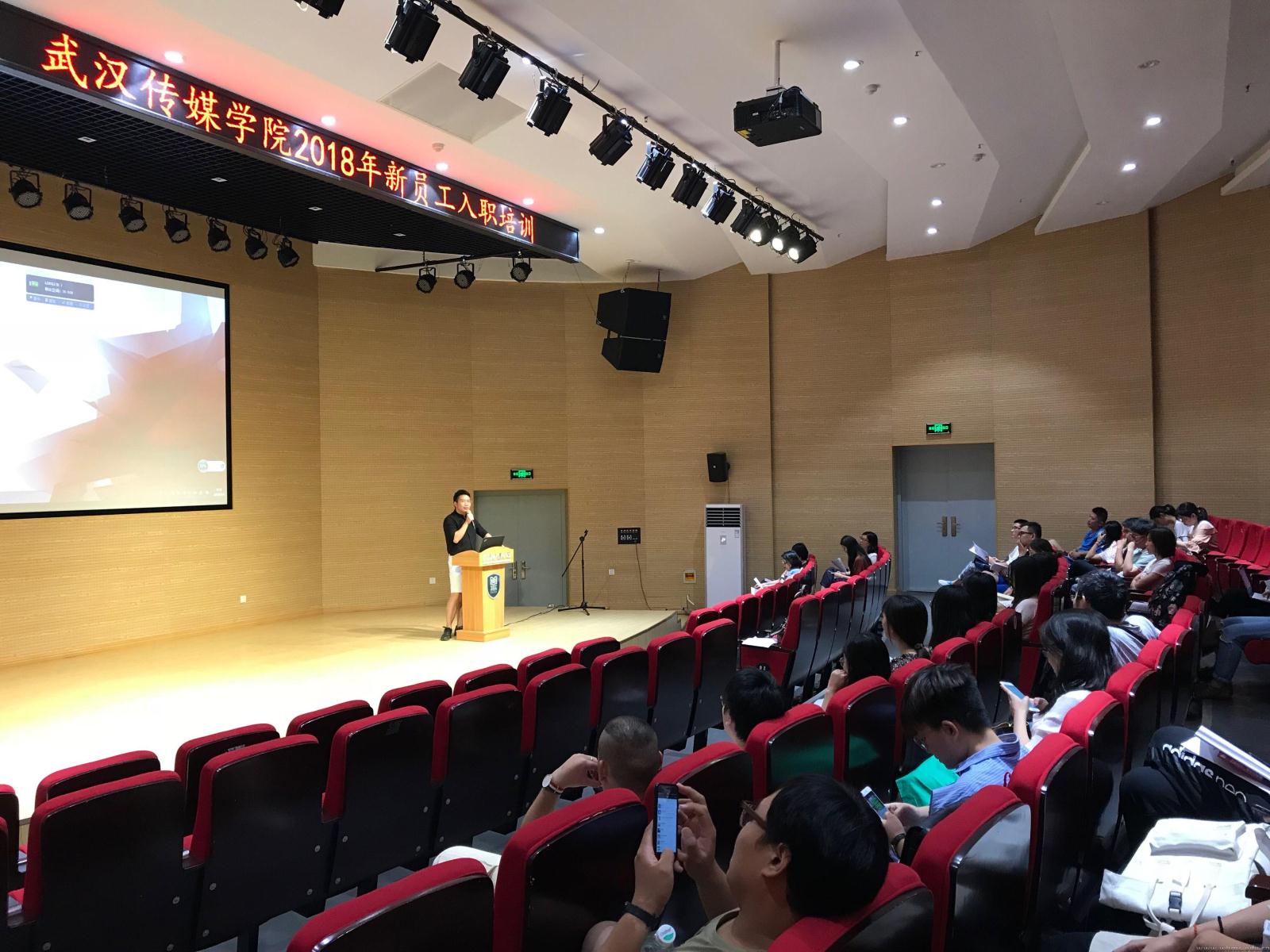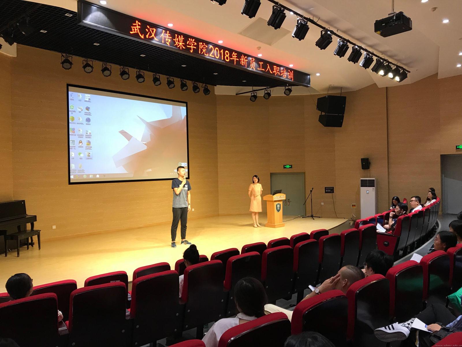 9月6日上午,开班典礼在圆形报告厅举行。作为主持人,人事处王静老师介绍了三天的培训课程,强调了培训纪律。新老师作了简单的自我介绍后,播音主持艺术学院胡桐老师讲述了自己与学生相处的几件难忘的事情,与新老师分享了入职一年来的成长经历。
