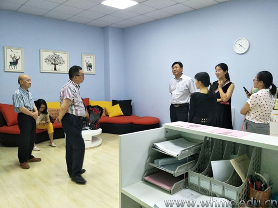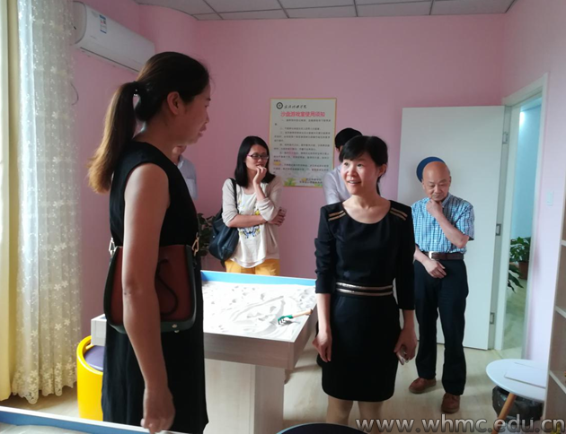 武传新闻网讯(文、图/通讯员李霞倪聪)6月5日上午,武汉商贸职业学院副校长钟克喜、学工部部长张一鸣、心理中心主任张掌然、财务处处长李枫、资产处处长张枳等一行10人前来我校大学生心理健康教育中心参观交流。