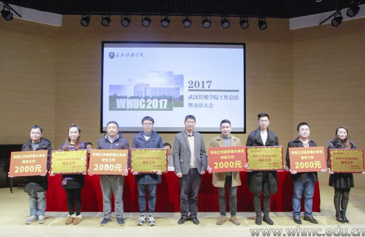 校长桑建平、党委书记周挥辉、党委副书记余建军、副校长陈智愚为四个专项工作考核优秀单位以及专项工作进步最大单位颁奖。文化管理学院、人文与艺术学院、新闻传播学院获教学工作优秀单位前三名;播音主持艺术学院、设计学院、文化管理学院获科研工作优秀单位前三名;电影与电视学院、新闻传播学院、设计学院获学生工作优秀单位前三名;人文与艺术学院、新闻传播学院、文化管理学院获就业工作优秀单位前三名。