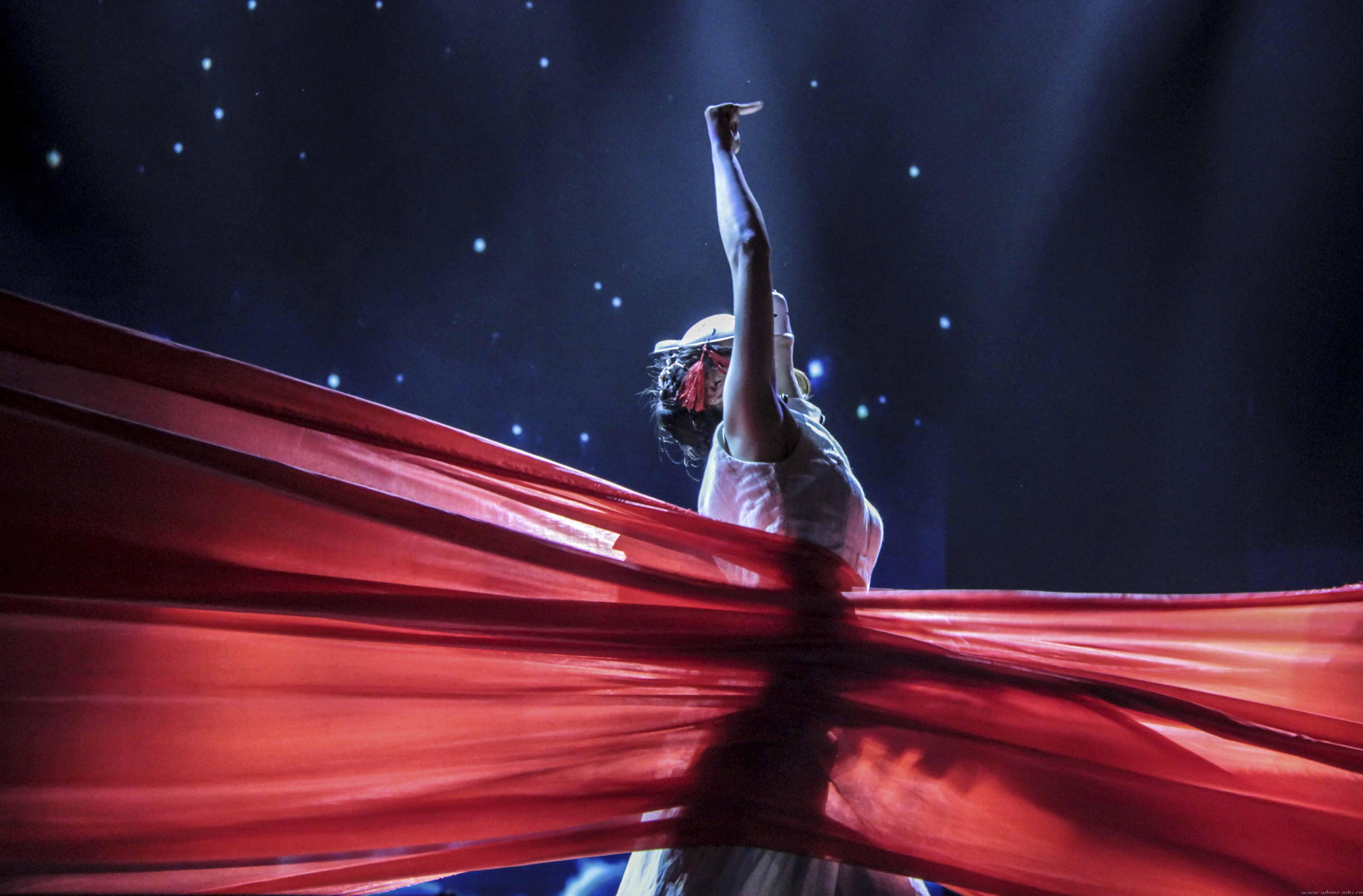 随后,晚会赞助商梵大集团、建设银行工作人员与观众互动,还为新生送上许多小礼物,派发的2轮微信红包点燃了现场的氛围。2017级表演专业新生余为和2016级播音主持与艺术专业学生吴天成为观众带来了吉他弹唱《我在武汉的夜里》,同时屏幕上播放着沙画视频,与低沉深厚的歌声相辅相成。2016级舞蹈学专业学生带来的群舞《出水芙蓉》紧随其后,演员们身穿人鱼裙像水中的精灵,优雅的舞步和舒适的音乐给同学们带来视觉和听觉上的享受。