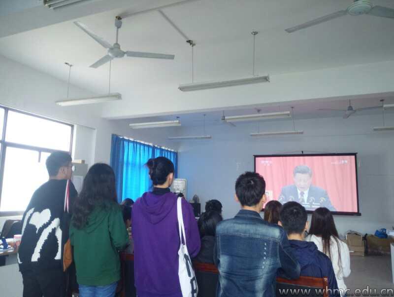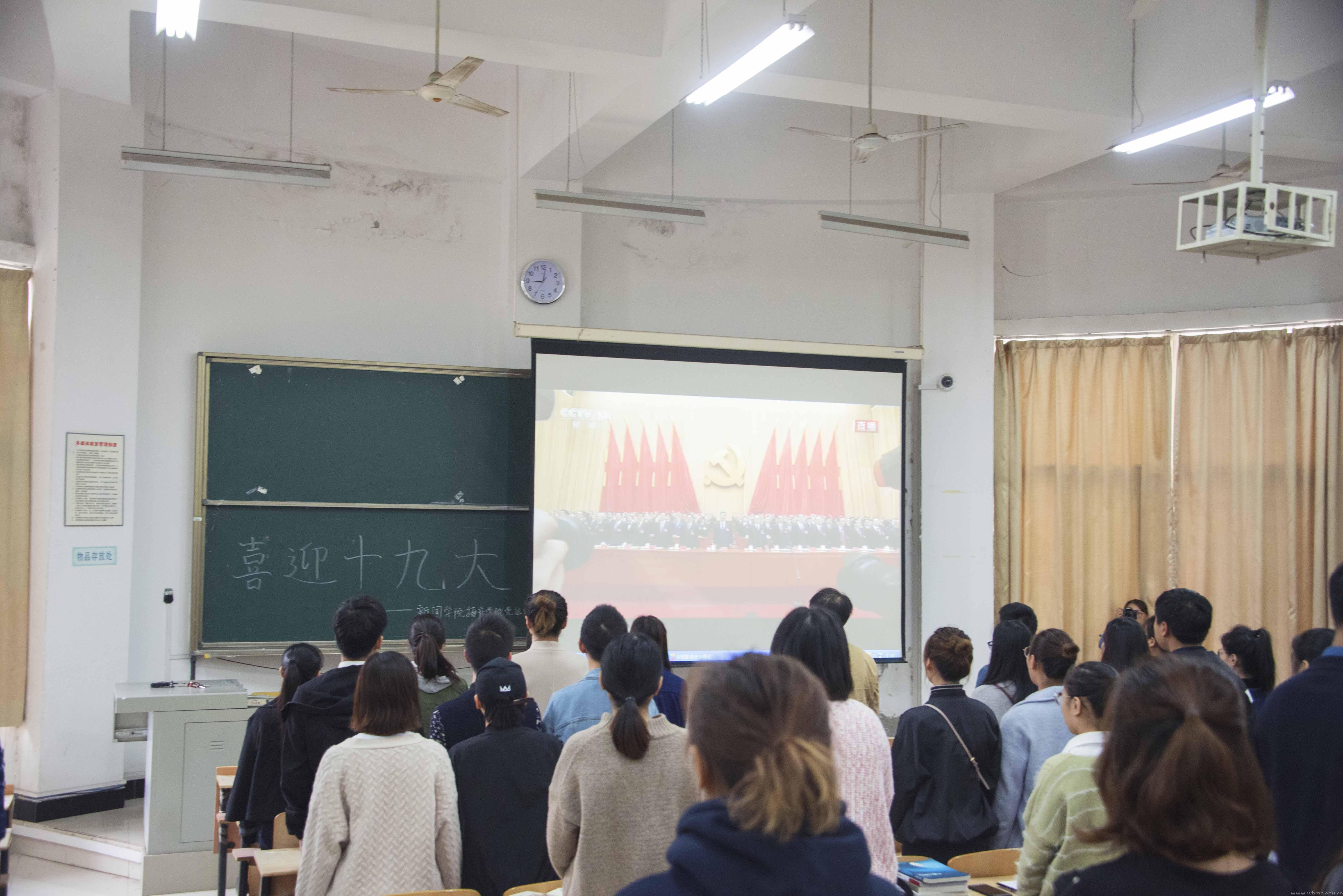 我校党委、各二级单位、各支部、广大党员和师生通过电视、网络、手机等各种形式收听收看大会盛况。早上8时,新闻传播学院与播音主持艺术学院的学生陆续走进3201教室就坐,观看开始前,新闻传播学院与播音主持艺术学院党总支副书记侯亮荣讲述了中国共产党的发展史;在观看过程中,现场严肃寂静,氛围庄重,在场的老师和同学都聚精会神,不时为习近平总书记的报告所鼓舞,纷纷详细记录个人感悟。由于上课未能参与集中观看的师生,将在课下进行补听补看。