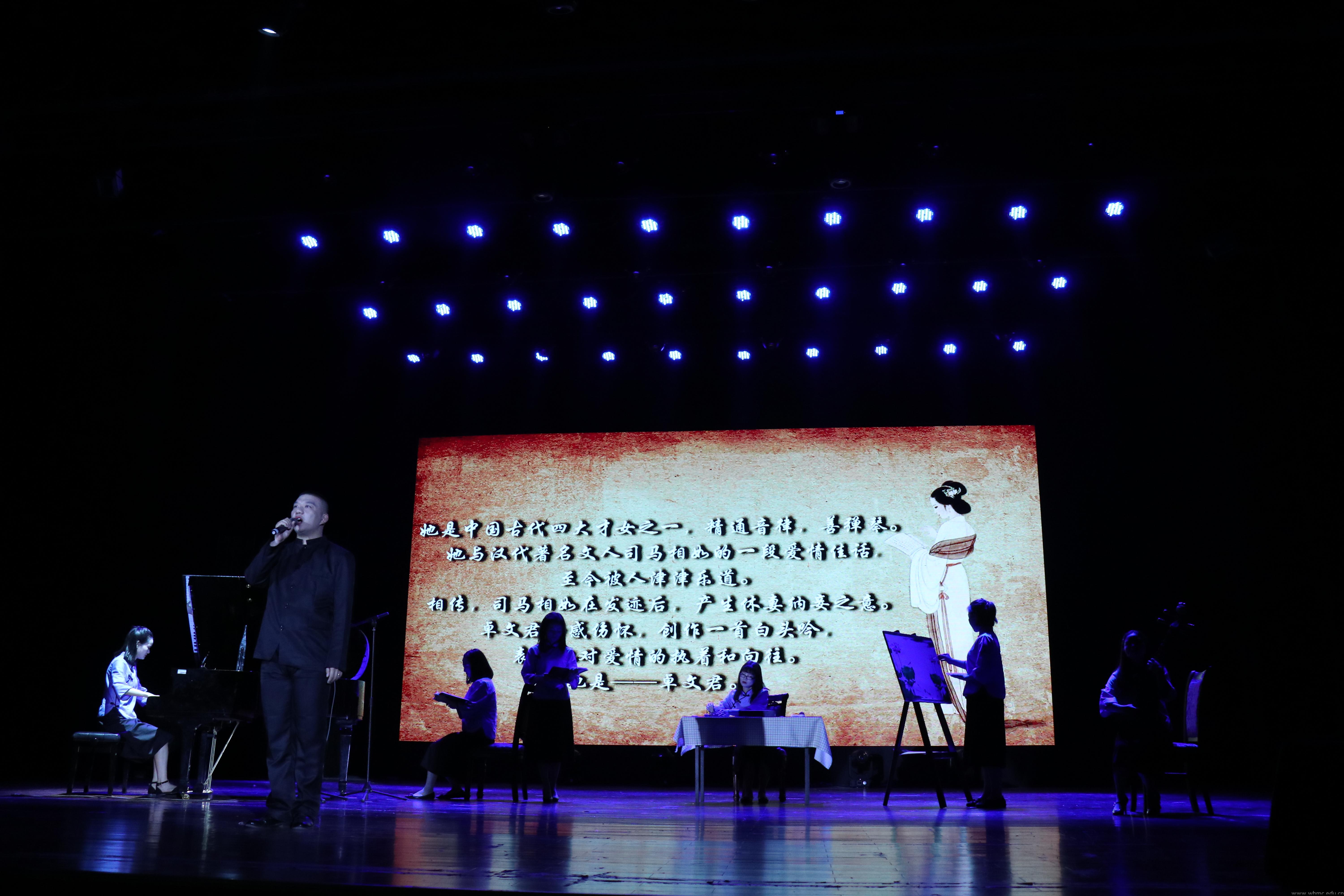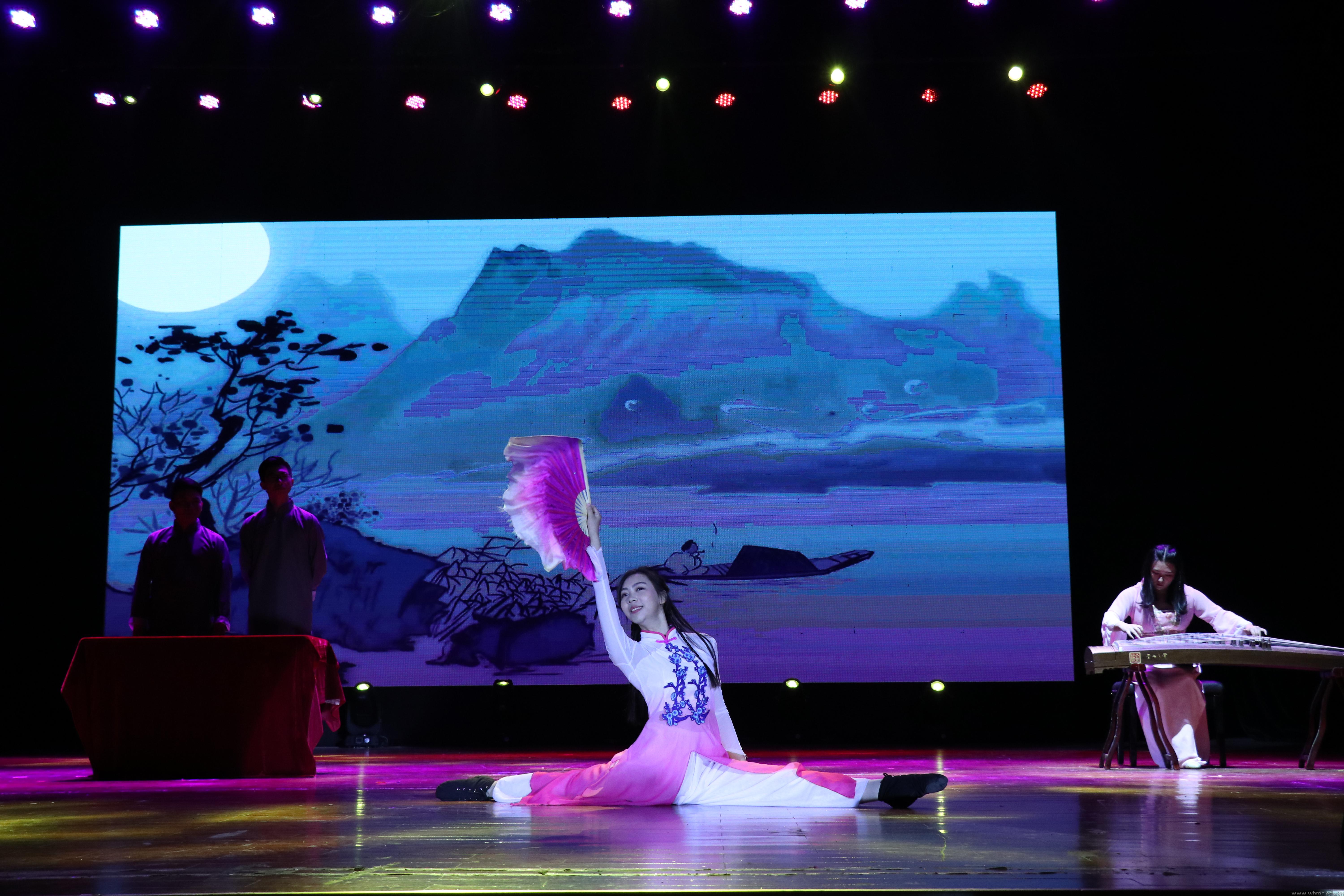 行政2队带来的节目《传媒朗诵者——古今才女情》,从卓文君到席慕蓉再到张爱玲,朗诵者饱含深情的朗诵,打动了现场的每一位观众。舞台上,人文与艺术学院的老师仿佛变成了初恋的少男少女,用9种语言演唱了甜蜜金曲《告白气球》。