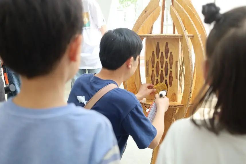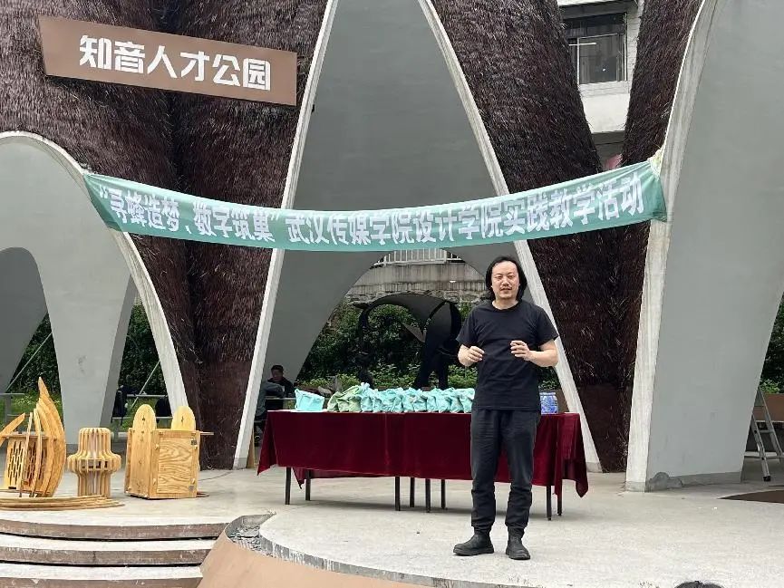 武传新闻网讯(通讯员 王龙)近日,我校设计学院联合武汉数字榫卯科技有限公司和五里墩街五麒里社区,在武汉汉阳知音人才公园共同举办了一场别开生面的实践教学活动——“寻蜂造梦数字筑巢”。
