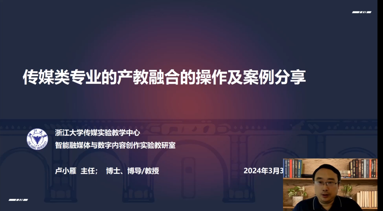 浙江大学传媒与国际文化学院教授、正高级实验师、博士生导师卢小雁,聚焦产教融合的实践操作,通过分享传媒类专业产教融合的政策背景、细分方向与发展现状以及具体案例,为教师们提供了宝贵的实践经验和操作指南。