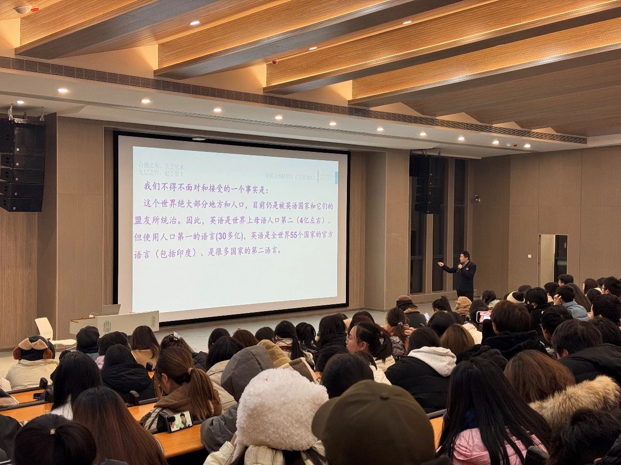 本次讲座的顺利开展,在“我们为什么要学好英语”这一方面使学生们理解并清晰知晓当今时代学习好英语的重要性,并且提出了英语学习过程当中会遇到的一些共性问题并得到了良好且充分的解决。在“我们怎样学好英语”方面也使新生们明白了提升“阅读”“听力”“口语”“写作”“翻译”等多方面英语能力的具体学习方法,为我校学生学好英语这一行动注入了强大动力。