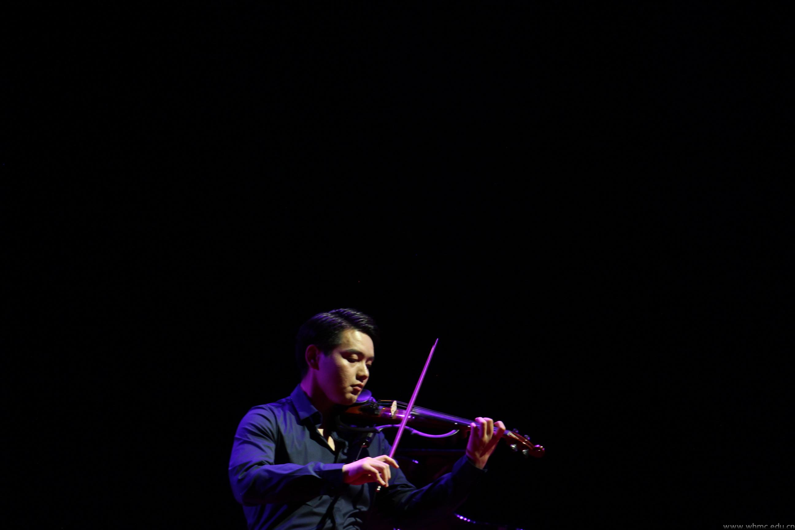 13级音乐表演专业主修钢琴的张帅在表演中与指导老师郑雅丽一起弹奏了由德国作曲家Johannes Brahms作曲的《圆舞曲Op.39》。这是张帅第一次尝试双人钢琴弹奏,无论是和老师之间的默契程度,还是技术上的差距,都让他倍感压力。经过一个多月的磨合、练习,张帅汇演时的表现获得了老师的肯定。除了钢琴合奏,张帅为观众带来了保加利亚著名电子小提琴家Diana Boncheva演奏的《Beethoven Virus》专辑中的第八首《Purple passion》,律动十足、旋律欢快,演绎了现代电子小提琴的激情与优雅,引起了全场观众的掌声和欢呼声。