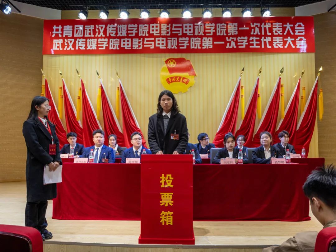 武传新闻网讯(通讯员张弘雨)12月17日,我校共青团电影与电视学院第一次代表大会暨第一次学生代表大会在圆形报告厅召开(大悟校区设分会场)。