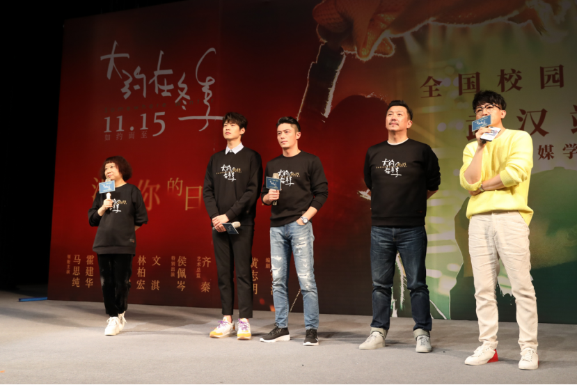 武传新闻网讯(文/记者 叶信乐 见习记者 李明月 蔡弘禧 图/摄影记者 卢丽雅)11月8日,电影《大约在冬季》校园超前观影暨主创交流分享会在我校凤凰演播厅举行。导演王维明、编剧饶雪漫、领衔主演霍建华、主演魏大勋与我校师生现场互动,分享电影创作的故事。