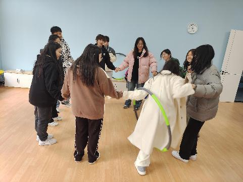 活动伊始,心协讲解员向参观同学介绍预约大厅、教师风采和心理咨询的预约流程和方式,随后带领各班依次参观体验沙盘游戏室、个体咨询室、家庭治疗室和团体辅导室。为了有更好的参观体验,本次活动在团体辅导室设置了“抢凳子”“能量传递”“不被定义的自己”和“一圈到底”四项小游戏,并设有荣誉墙。同学们在讲解员的带领下纷纷涌入团辅室体验各项游戏,并荣誉墙上留下签名或是心灵寄语。游戏体验结束后,讲解员带领参观班级前往大厅参与抽奖,并在心理中心门口为各班级合影留念。