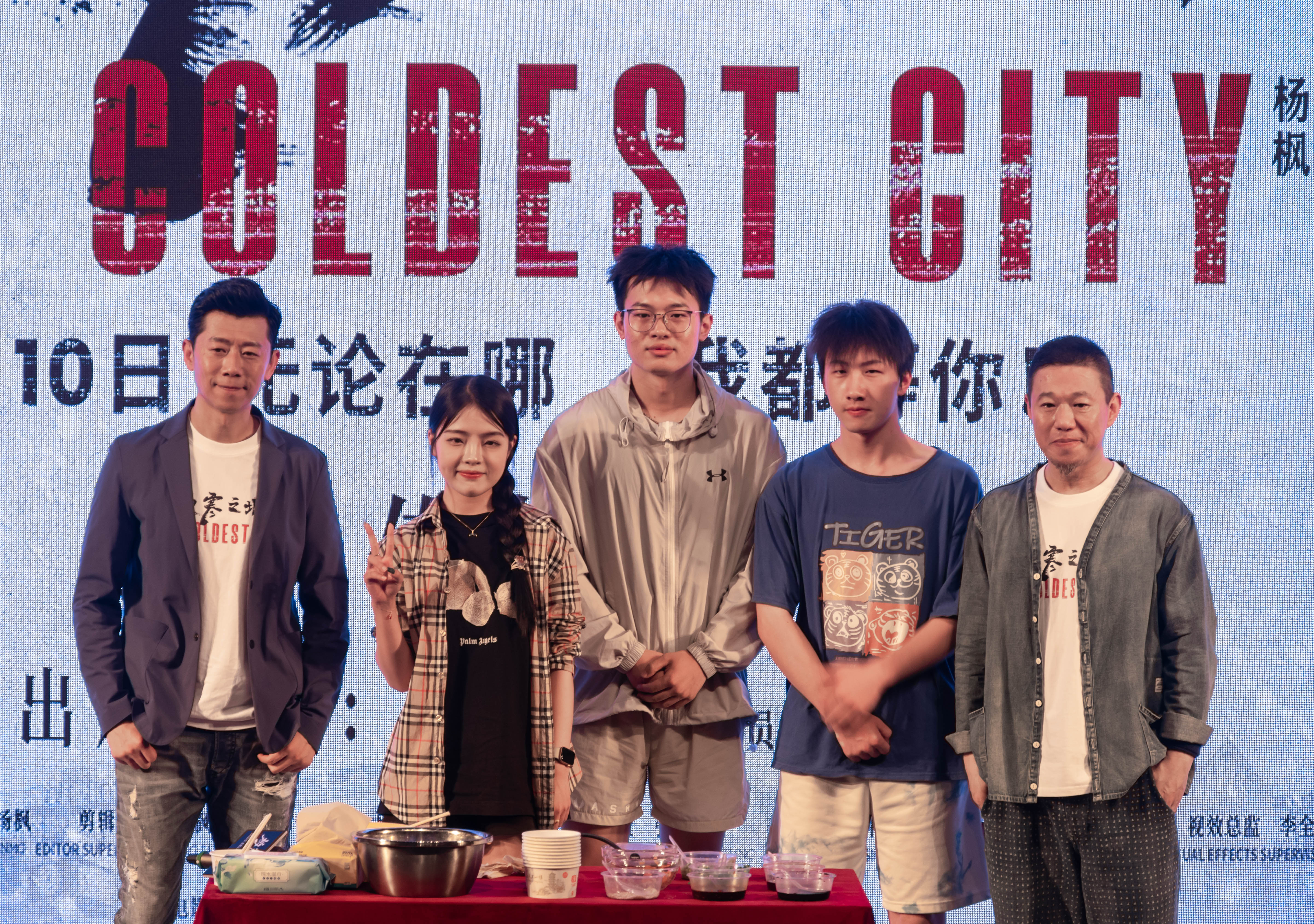 最后,现场观众在主持人的带领下共同祝贺电影《极寒之城》票房大卖,并与电影主创人员进行了大合影。
