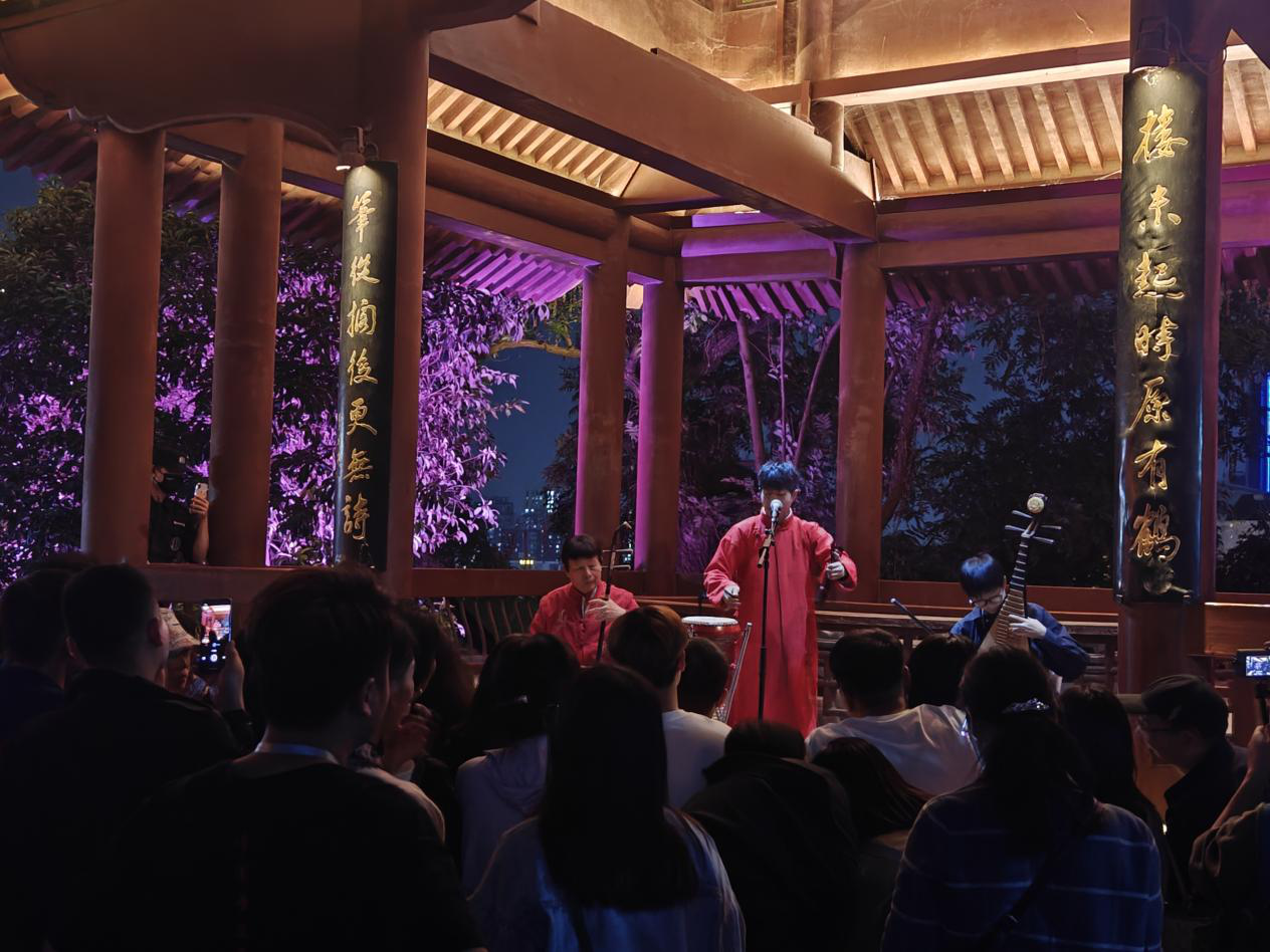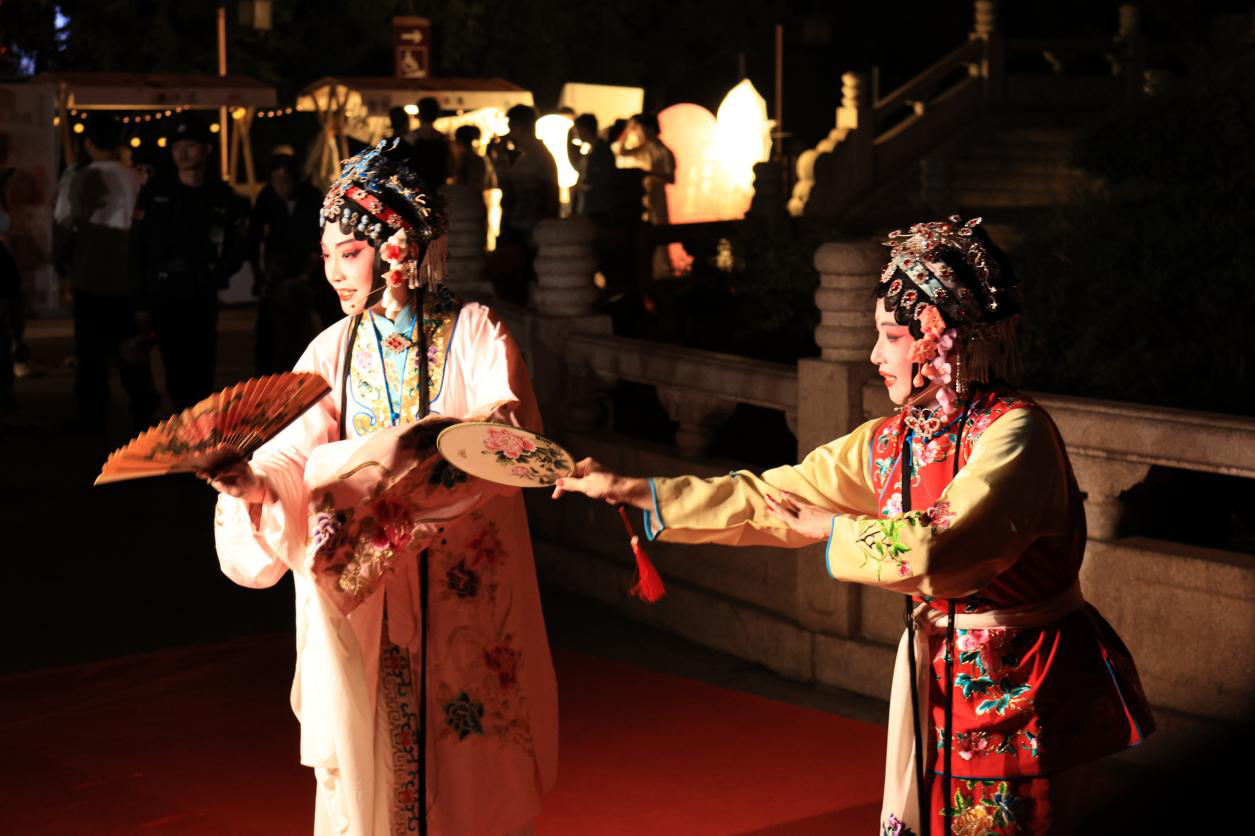 非遗文化表演由文化产业管理专业演艺方向毕设团队策划实施,包括惟妙惟肖的皮影、古韵悠长的昆曲、声沁人心的湖北大鼓,还有气势汹涌朝气蓬勃的民族舞。不同的展现形式让非遗文化再现魅力,为游客带来非遗文化的别样体验。