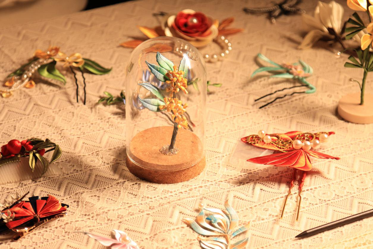 活动现场不少工作人员身着旗袍,绿发簪花,融入了传统文化的色彩,增添活动现场的氛围。