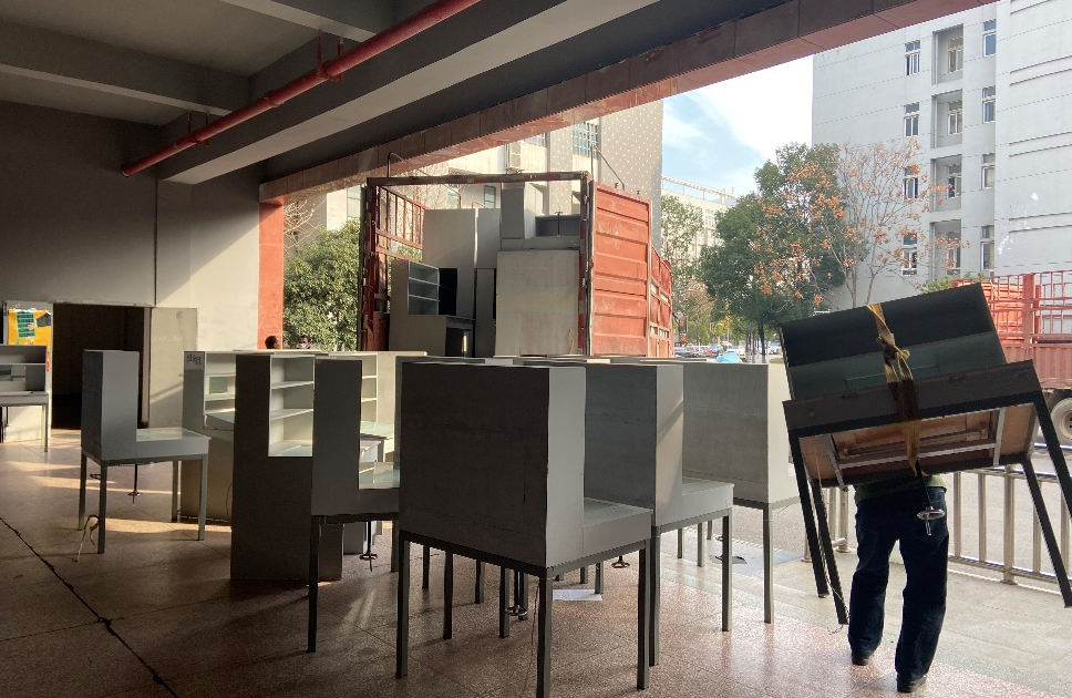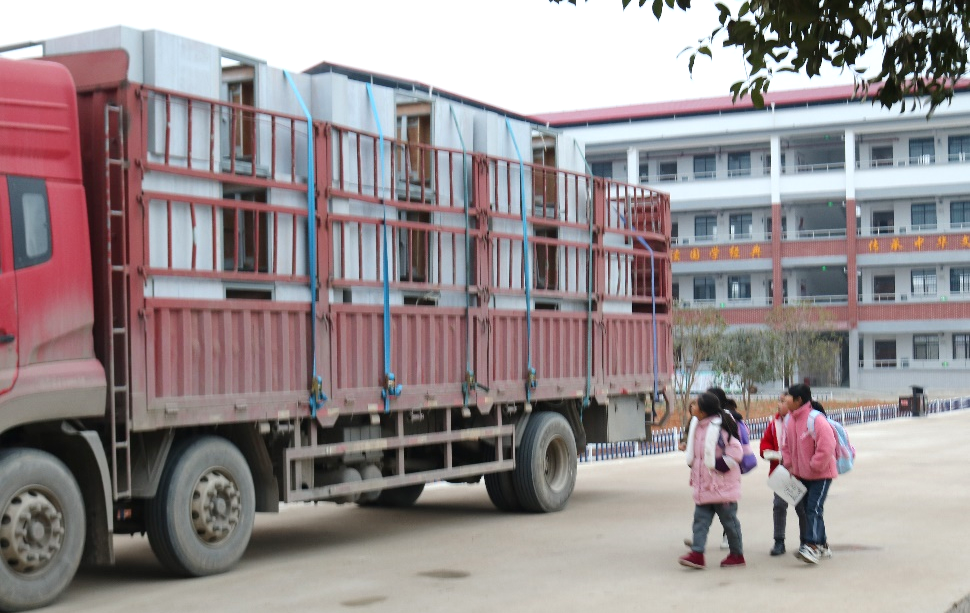 12月26日一早,162套专业美术课桌在米兰体育网页版登录进行装车,经历长达十多个小时的装卸、运输,下午五时承载着500多名乡村学生美术梦想的课桌送抵石城镇中心小学,并连夜完成了四个美术教室的改造升级。