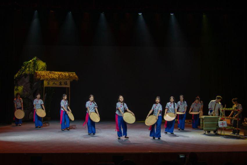 据悉,剧目《瑶鼓咚咚》是以党的二十大精神为指导,聚焦三农,以支援瑶寨建设的阳阳书记带领瑶寨村民脱贫攻坚,脱贫致富的故事为题材,剧目涵盖独特的民族音乐元素与戏剧舞台表演形式,运用声势、嗓音、律动、乐器,并结合瑶族民歌、长鼓、舞蹈将瑶族内涵丰富的文化元素、瑶山人民的精神风貌以及独特的文化魅力呈现出来,现场展演形式多样、精彩纷呈。