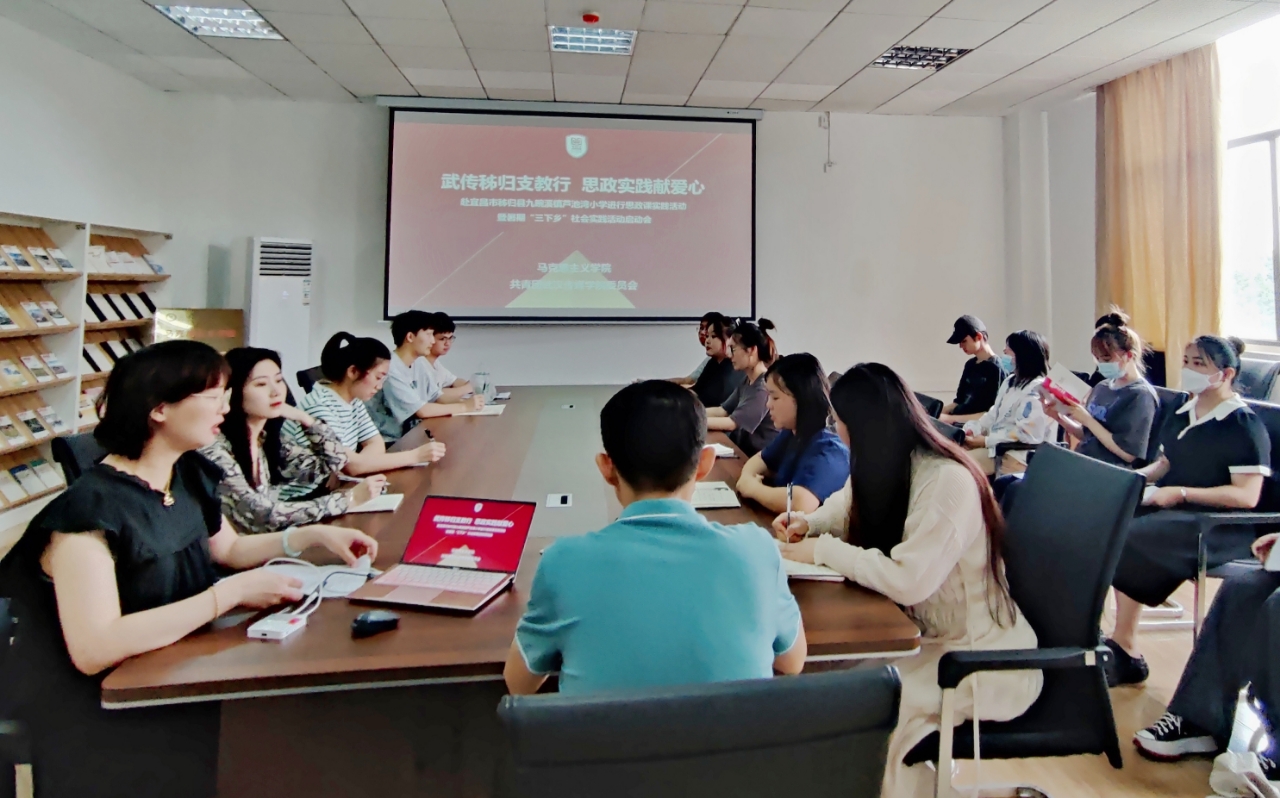 (武传新闻网讯 通讯员 张红)为深入学习宣传党的二十大精神,贯彻落实习近平总书记关于青年工作的重要思想,向广大青年做深做实习近平新时代中国特色社会主义思想宣传教育。2023年6月29日12点,米兰体育网页版登录赴宜昌市秭归县九畹溪镇芦池湾小学进行思政课实践活动启动会在8201会议室召开。马克思主义学院院长张燕明,校团委副书记蒋璐璐,马克思主义学院及学工处的代表老师及此次支教活动的全体同学参加了本次会议。本次会议由马克思主义学院德法教研室主任徐小莉主持。