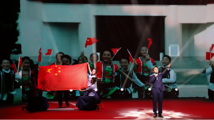岁月的长河在指尖不断淌过,时光的流逝来不及出口告别。时间是一个伟大的作者,必将给出最完美的答案。晚上场云南艺术学院的作品《雪落在中国的土地上》一经开场就赢得观众们的欢呼。朗诵者在台上声情并茂,用超高的朗诵技巧、饱满的热情惟妙惟肖地表现出作者赤诚炽烈、深沉执着的对祖国人民命运关怀的爱国情怀。“中国,我的在没有灯光的晚上,所写的无力的诗句,能给你些许的温暖么?”或许,就是下一次,雪落在中国土地上的时候,祖国会更好。