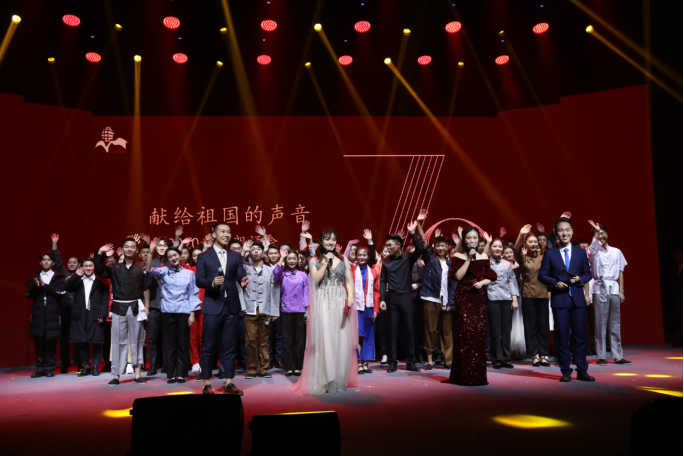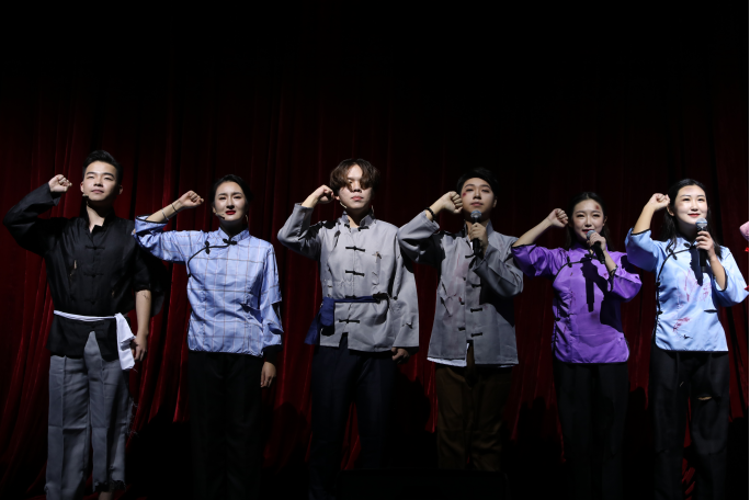 新中国已走过70年的光辉历程,正因为有着祖国亿万同胞的共同奋斗,才谱写了一幕幕可歌可泣的诗篇。下午场朗诵会由米兰体育网页版登录播音主持艺术学院学生拉开序幕。朗诵者以诗献礼,声抒长情。当灯光亮起,学生们穿着整齐的白衬衫,呈“M”形状错落有致地站在灯光闪耀的舞台上,个个精神抖擞、气宇轩昂。随后,一位身着红色大褂,颇有“巾帼不让须眉”气势的女生击起了鼓,气势磅礴的阵阵鼓声与朗诵者们铿锵有力的“有朋自远方来,不亦乐乎?”的朗诵将此节目推向高潮,赢得热烈的掌声。