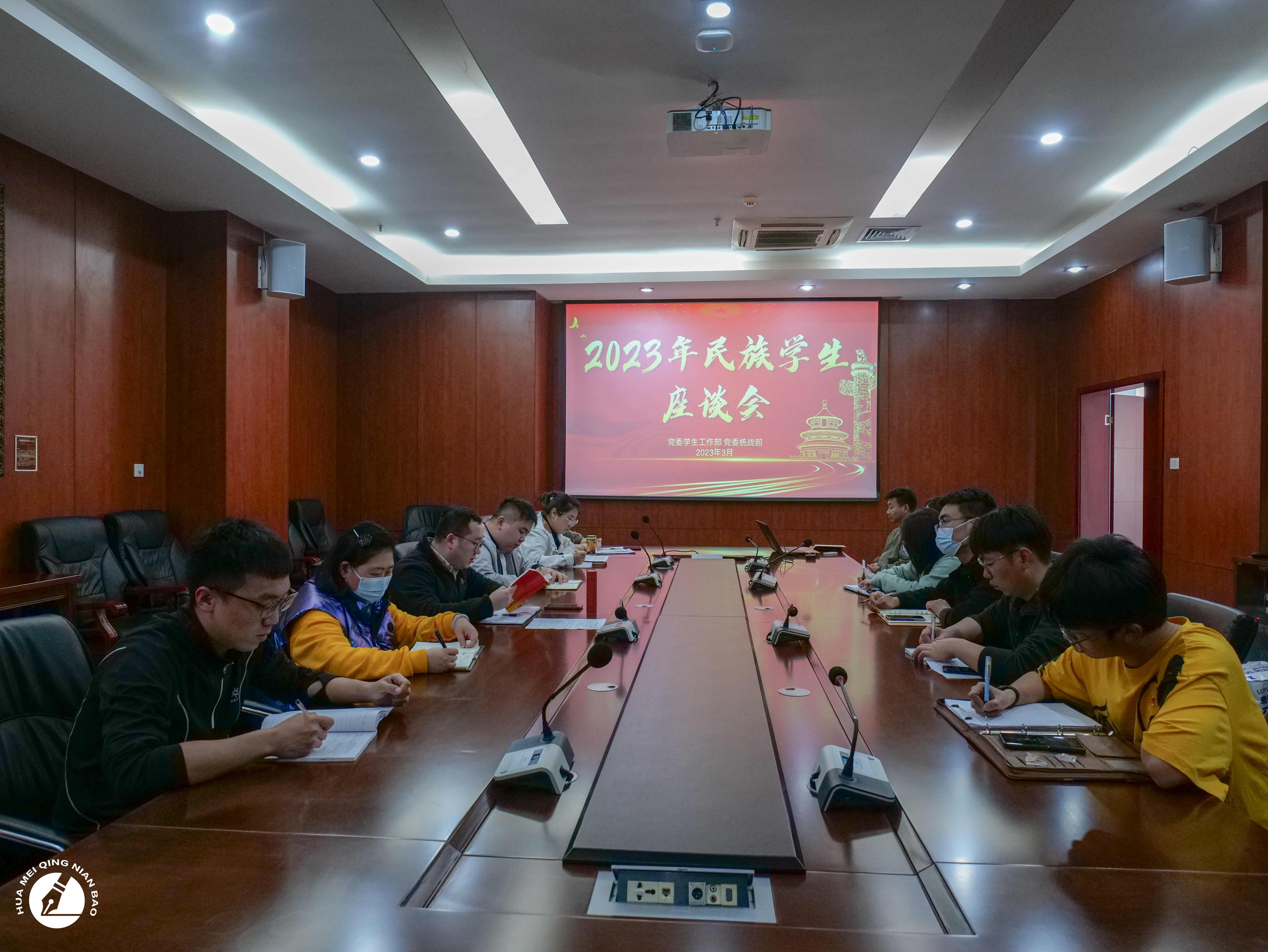 为贯彻落实中央民族工作会议精神,深化民族团结进步教育工作,3月30日下午,我校在行政楼206会议室召开少数民族学生座谈会。党委统战部副部长李奉天、学生工作部李伟成,新疆内派教师格日丽玛,各学院团委书记及新疆籍学生代表参加会议。