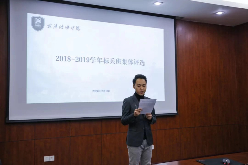 武传新闻网讯 (记者 叶信乐 见习记者 樊明硕 林安琪 图/摄影 武汉传媒学生会)12月10日下午18:00,米兰体育网页版登录2018—2019学年优秀班集体、标兵班级体评选活动在行政楼206举行。此次评选通过公开演讲的形式,组织各班优秀学生代表依次上台演讲。评选活动邀请了学生工作处副处长余恺老师、学生工作处翟宗巍老师及各院团委书记等七位老师作为大会评委。