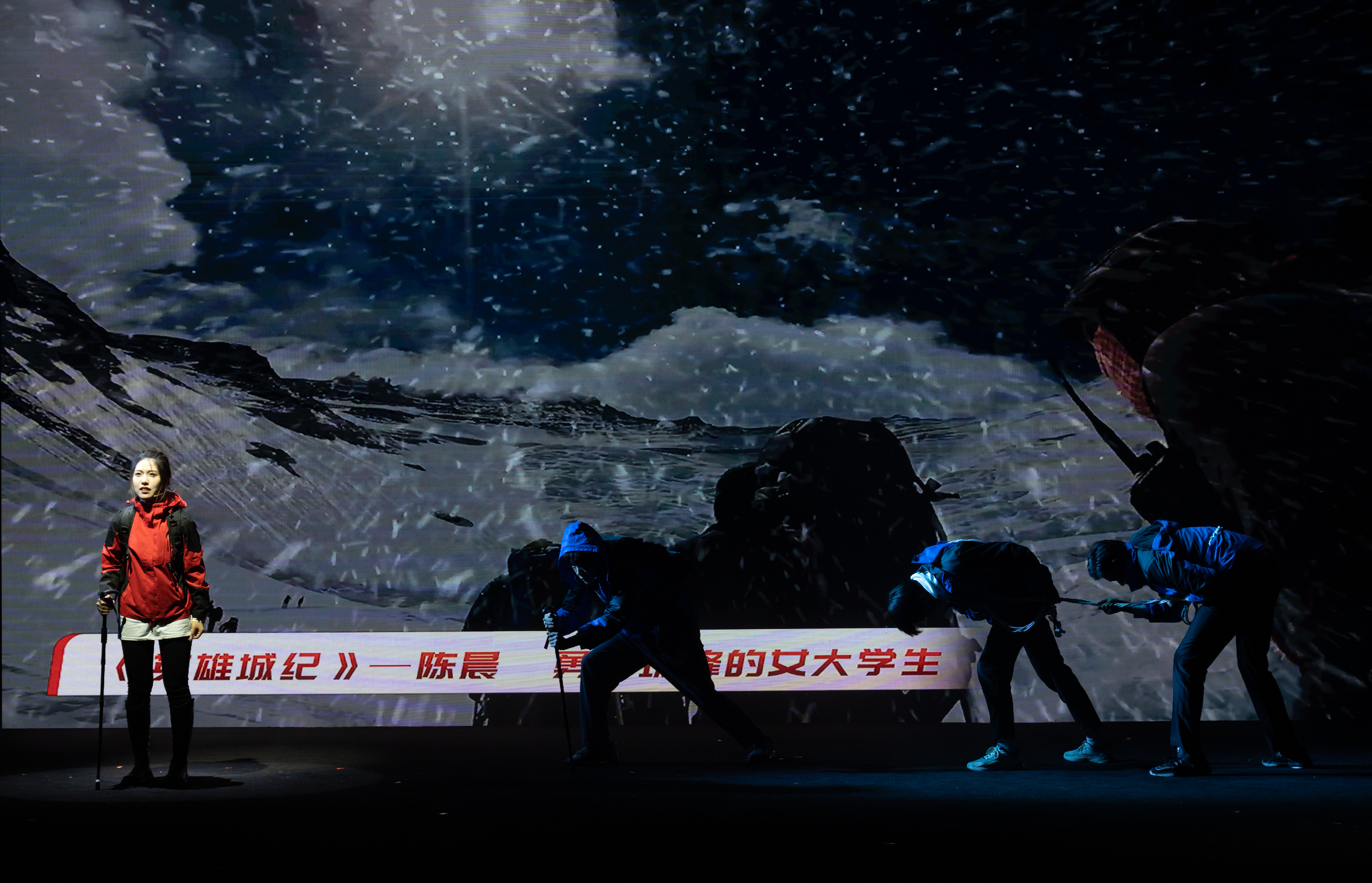 “人民有信仰,民族有希望,国家有力量”,播院学子用朗诵剧的形式,讲述了勇攀珠峰的女大学生陈晨的坚毅、两江之上陈忠贵对生命的守望、奔跑在武汉马拉松上的张盼儿最美的身姿以及永失所爱的烈士遗孀亢群的坚韧,一个个剧目的演绎道出了武汉人的信仰,更道出了武汉这座城市的《英雄城纪》。
