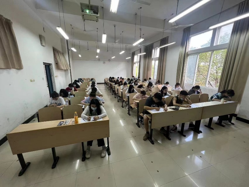 比赛当天秋高气爽,但学生参赛热情如火。参赛选手按时走进考场,洪俊、龚莉、邓欢、陈义权、钱博洁、李娟六位监考老师按单人单座布置考场,认真监考,比赛全程禁用手机,力保比赛公平公正;选参赛手们秉承着沉着冷静,严肃认真的态度,争分夺秒,坚持答题到最后一分钟。