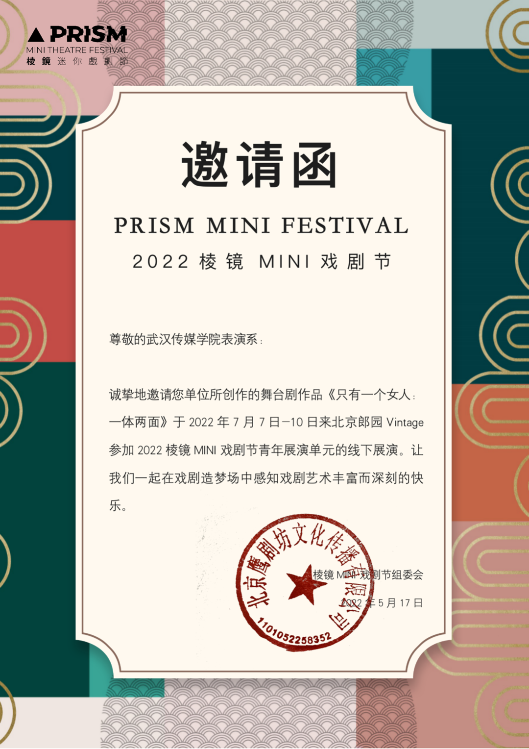 由电影与电视学院码字主持,跟你讲讲表演系「杨培涵老师」指导的舞台剧,受邀「2022棱镜MINI戏剧节」的故事,从中探索戏剧新生活~为表诚意,邀请函先发为敬。