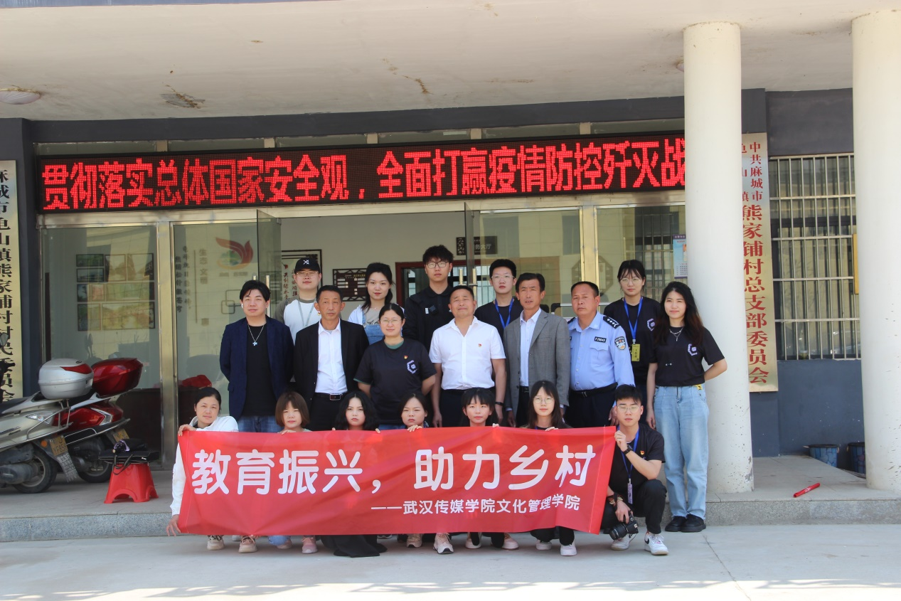5月21日,文化管理学院师生团队,来到曾为我校乡村振兴扶贫点——湖北省麻城市龟山镇熊家铺村开展乡村振兴实地考察活动。本次活动旨在利用电商专业优势,进一步探索特色产业发展,汲取乡村优秀文化,助力乡村经济发展。我院党总支部书记张爱军、辅导员汪丰毅、王喆、陈可冉,党总支部组织委员武思雨、电子商务教研室副主任李兴莹、电商专业教师胡荣熙带领九名同学参与了此次活动。