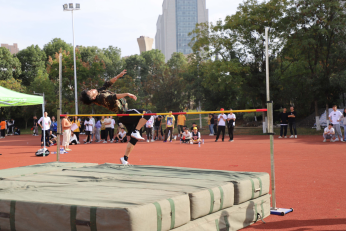 (武传新闻网讯 文/记者 叶信乐 见习记者 傅炜婷 邓世颖 摄影记者 马嘉潞)10月31日下午,操场阳光正好,通过一个个跳跃的身影,男子跳高预决赛进行得如火如荼。经过长达一个半小时的角逐,最终人文与艺术学院的大三学生陈文浩以1米70的成绩夺得冠军。