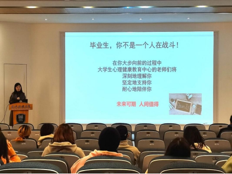 活动伊始,心理中心李霞老师以《毕业生,你焦虑了吗?》为主题,与毕业生进行互动交流,让大家就“毕业了以后你想要什么样的生活”展开讨论,详细了解毕业生们现在面临的主要问题与困惑。李老师结合自己心理咨询的案例分析了毕业生的心理状态及毕业生焦虑的根源,用生动的语言、丰富的实例讲解了毕业生常见的心理问题。随后,她为同学们传授了缓解毕业焦虑的小方法,讲解了毕业生就业压力自我调节的“四步法”,引导同学们找准定位、明确方向、投入专注、发挥潜能。