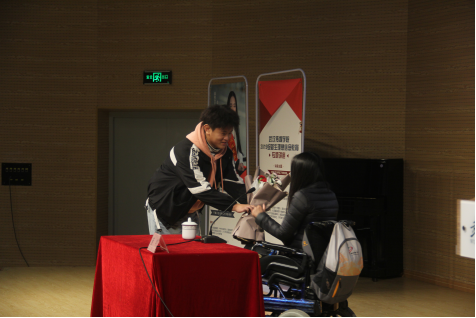 活动伊始,学工处处长张燕明上台主持,向大家介绍了此次宣讲的主讲人"董明爱心志愿者团队"创始人、"北京奥运会火炬手"、"北京残奥会形象大使"董明,随后通过一则纪录片向观众展现了董明老师在经历残疾的痛苦却不向命运低头的生活缩影。