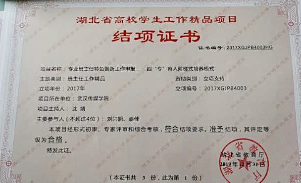 近日,湖北省教育厅下发了《省教育厅关于公布2017年湖北省高校学生工作精品项目和实践育人特色项目结项验收结果的通知》,我校两项学生工作精品项目均顺利通过结项验收。