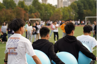 (武传新闻网讯 文/记者 叶信乐 见习记者 宋甜甜 林安琪 摄影记者 钟赴宇)10月31日下午1点40分,我校第十三届田径运动会趣味项目“夹球前行”学生组比赛在现场观众热情洋溢的呐喊声中拉开了序幕。经过近半个小时的激烈角逐,新闻传播学院大一学生的队伍以52.19秒的成绩斩获冠军。