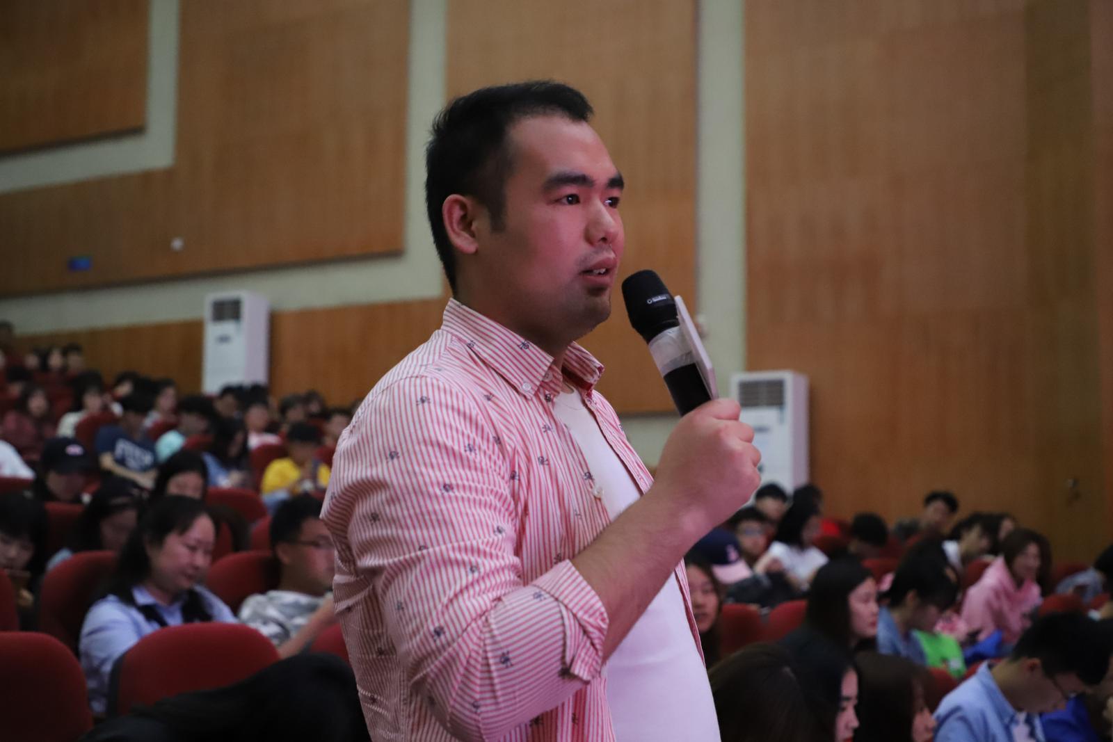 武传新闻网讯(文/记者 汪婧 见习记者 向涵 图/摄影见习记者 梁嘉雍)5月9日,电影《音乐家》校园超前观影暨主创分享会在我校凤凰演艺厅举行,制片人沈健来现场与我校师生交流互动,谈及电影背后的故事。