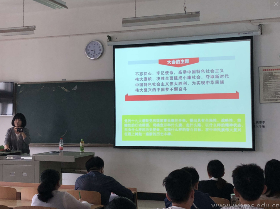 武传新闻网讯 5月10日下午,我校新闻传播学院、播音主持艺术学院党总支邀请思政部罗晶晶老师,在3301教室为学院全体教工党员及学生党员开展十九大专题学习活动。此次学习由播音主持艺术学院党总支副书记侯亮荣主持。