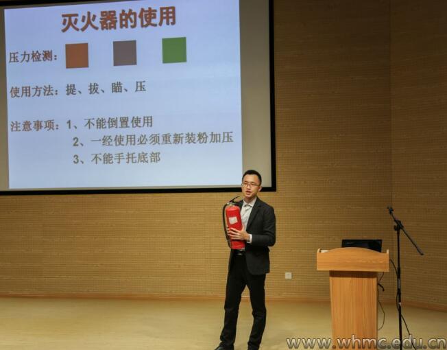 武传新闻网讯(文/见习记者 郎文 王洪彬 图/摄影见习记者 杨振豪)“着火了,你该怎么办?”11月23日下午,为进一步提高教职工安全防护自救能力和安全意识,保卫处在圆形报告厅开展了以“关注消防,平安你我”为主题的教职工消防安全培训。学校保卫处、后勤处等行政职能部门,以及各院系辅导员参与了本次培训。