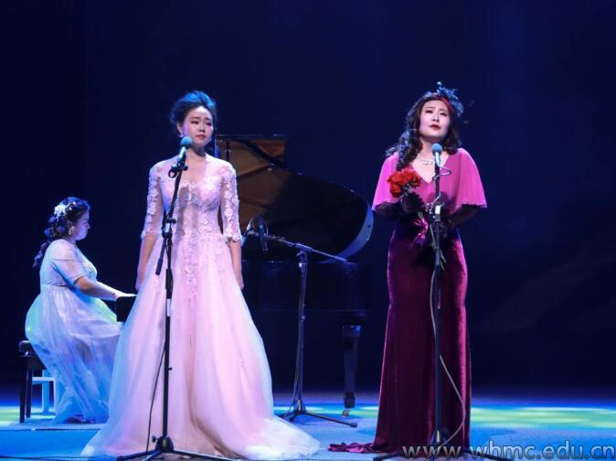 当晚最精彩的一幕,是师生同台献唱。吴巍丽、宋美虹、孙明敏为观众带来的音乐剧《猫》中的片段陶醉了在场所有人,无论是灯光的变化,还是每句歌词尾音的延绵,每一幅梦幻般的场景都直触人心。2015级舞蹈学专业学生带来的舞蹈《竹林下》一出场就让观众感受到无比的舒缓、自然。妙曼的舞姿似乎显示着大自然的美丽,绿裙翩翩起舞,让观众们似乎身处竹林,感受着万物生长的快乐。