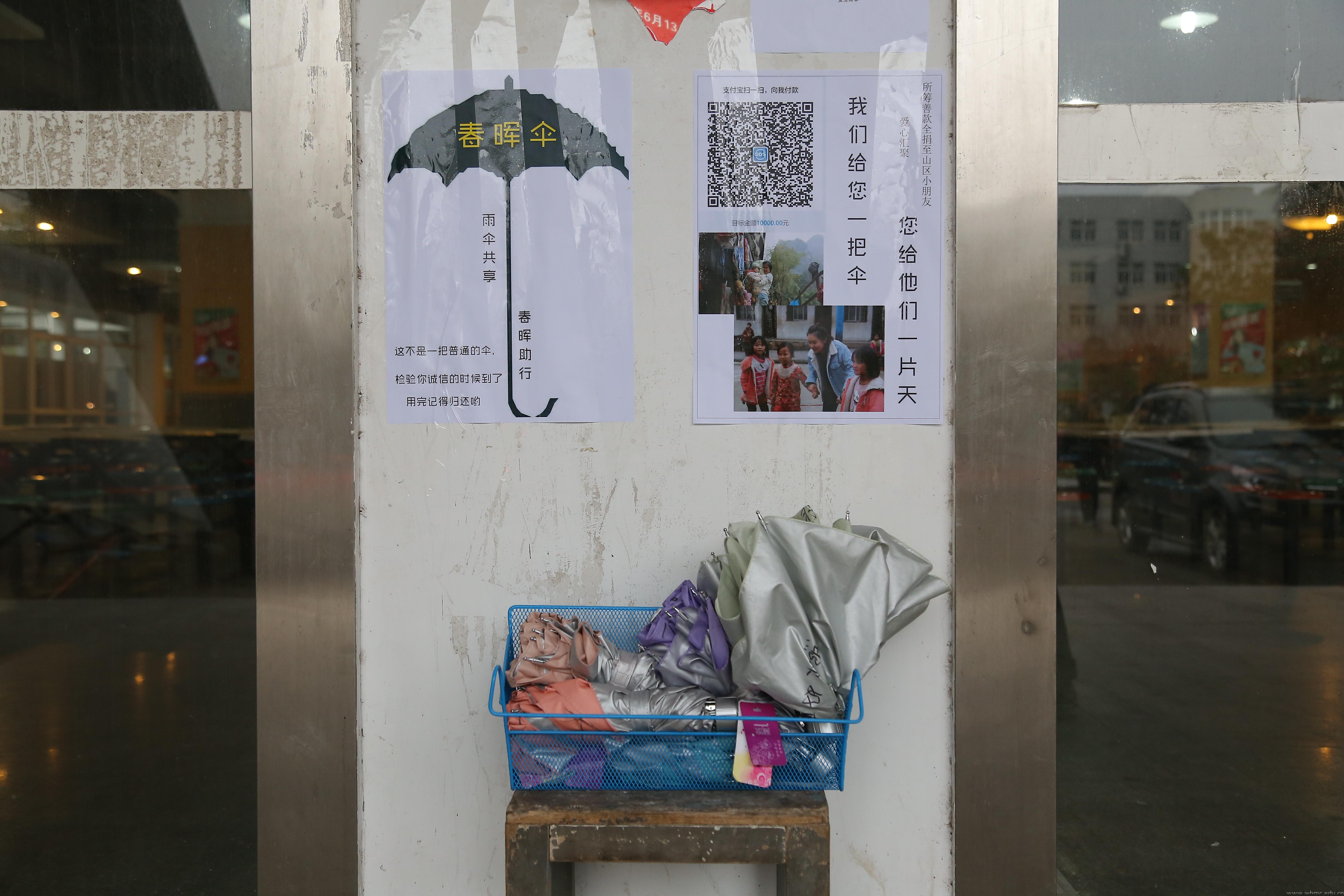 受最近大热的“共享单车”启发,还有近期武汉雨水不断的影响,春晖行动营便有了“共享雨伞”的想法。通过校外餐馆的赞助,春晖行动营首批购入了22把雨伞并于前几日正式投入使用。使用雨伞的学生可以通过扫描二维码捐款。所有善款都会由春晖行动营工作人员捐给山区孩子。