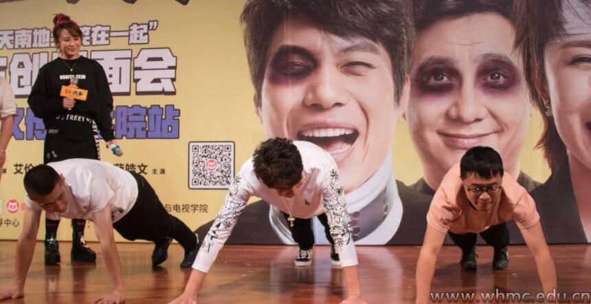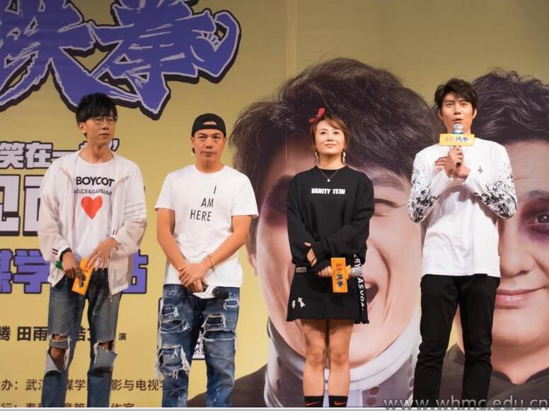 武传新闻网讯(文/记者 王通 图/摄影记者 蒋惠敏)9月22日下午,喜剧电影《羞羞的铁拳》校园点映暨主创见面会于我校凤凰演艺厅举行。导演宋阳、张吃鱼、演员艾伦和马丽来到活动现场与观众交流。