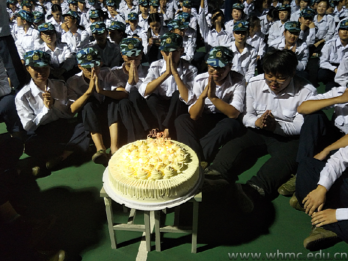 当晚,设计学院新生正在运动场上围成一圈拉歌,辅导员罗晓曼突然上前念了21名新生的名字,正当同学们摸不着头脑时,一个精心准备的大蛋糕被搬到了学生中间,同时人群中传来了“祝你生日快乐、祝你生日快乐……”的歌声。伴随着生日歌,21位寿星被请进人群中央,围着蛋糕许下了生日愿望。