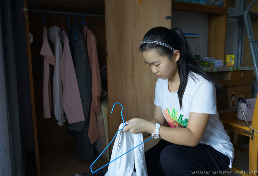 父母把管心雨送到寝室后离开后,管心雨便整理起自己的生活用品。收拾衣物,打扫卫生。管心雨说:“在家里经常帮妈妈做家务,所以料理生活已经得心应手,希望能尽快适应大学的学习和生活。”