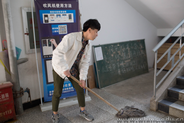 武传新闻网讯(文/记者 萱萱 郑涛 摄影见习记者 蔡临风)“阿姨,今天是妇女节,我来替您代班,您回去休息。”3月8日,2016级广播电视学专业学生李景秀一早来到该校西三栋女生宿舍,从宿管员张惠玲手中接过拖把,把大厅拖得干干净净。