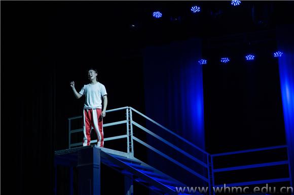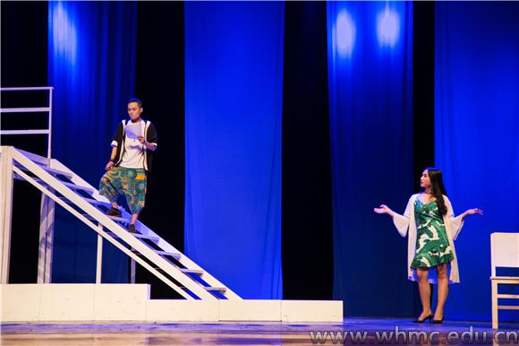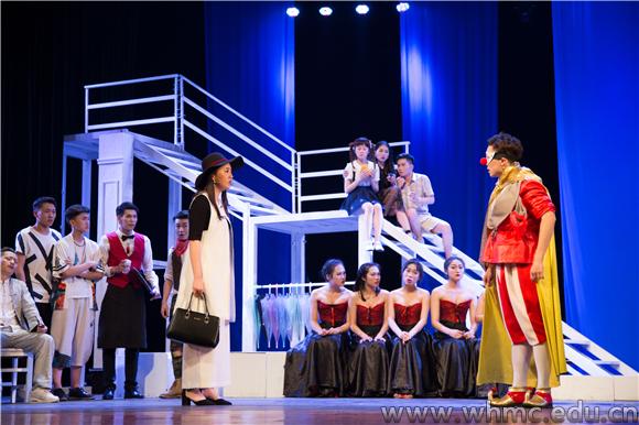 据了解,整场话剧不同风格的歌舞共有8种,牛仔、吉他手、红裙舞女轮番上场,演员们蹦蹦跳跳,让欢乐填满了整个大厅。导演于昊介绍,歌舞戏相结合,让话剧形式更为丰富,能全面展示学生的能力,也让学生们明白,形体对于一个演员的重要性。