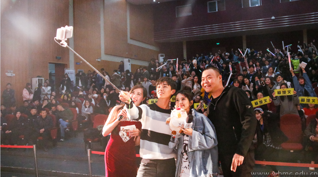 武传新闻网讯(文/见习记者 周学语 图/摄影见习记者 李洁莉 黄子豪)3月15日晚,2017版《射雕英雄传》电视剧粉丝见面会在学校凤凰演播厅举办。该剧郭靖的饰演者杨旭文、韩小莹的饰演者肖茵和张阿生的饰演者信鹏在现场与我校师生进行了交流。见面会开始前,校通讯社新闻部记者跟随楚天都市报、楚天金报记者对杨旭文进行专访。