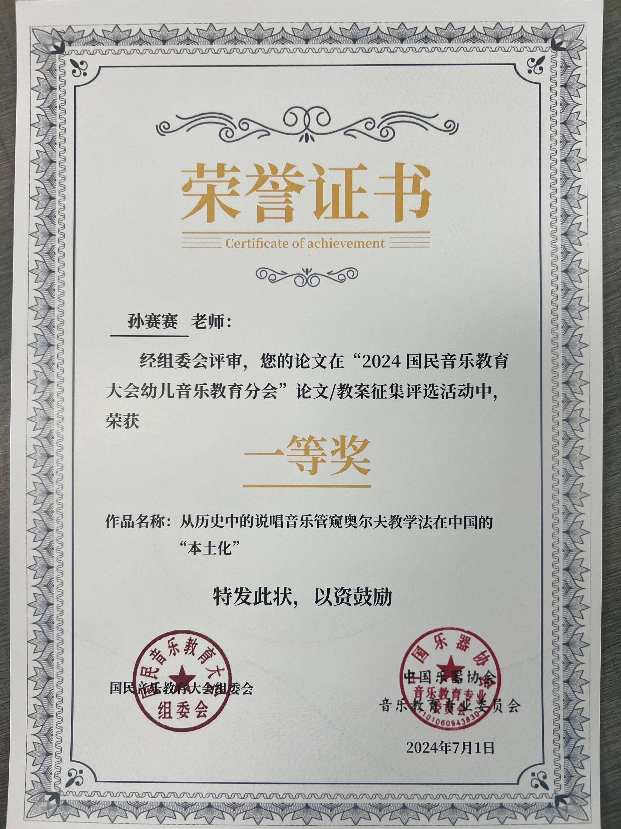 7月4日,“国民音乐教育大会”在华东师范大学举行,这是国内规格最高、规模最大、影响力最广的综合性音乐教育活动。我校人文与艺术学院音乐学专业青年教师孙赛赛受邀参加并作为嘉宾代表进行了鼓圈工作坊与相关主题的汇报。孙赛赛老师所创作论文《从历史中的说唱音乐管窥奥尔夫教学法在中国的“本土化”》在“2024国民音乐教育大会幼儿音乐教育分会” 论文/教案征集评选活动中,荣获一等奖。